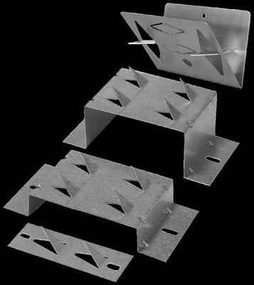 Le clip di impallaggio sono utilizzate per fissare facilmente i pannelli acustici (703 / 705 Board) alle pareti.Le dimensioni delle graffette sono 2-1/8" x 1-1/2"Le pinze di impallaggio sono montate sulla parete con una vite di cartongesso (non inclusa) o fissate con un adesivo (Multi-Seal 180).Si raccomandano 4-6 pinze per pannello standard da 2' x 4' assicurandosi che una pinza sia posizionata in ogni angoloPer le applicazioni di pannelli che richiedono un intervallo d'aria, i blocchi spazzatori in legno possono essere installati tra l'hardware di montaggio del pannello acustico e il muro a secco per mantenere il pannello distante dalla parete.
