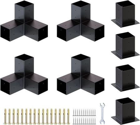 Questo kit di gazebo è molto facile da installare e da mantenere, tutte le parti sono fatte di acciaio al carbonio di alta qualità, molto resistente e resistente alla ruggine.e la superficie è spruzzata con vernice elettroforetica per prevenire la corrosione e la ruggineLa struttura è progettata per coprire le estremità intere di travi e colonne di legno, in modo che il legno non marcisca da anni di pioggia e luce solare.